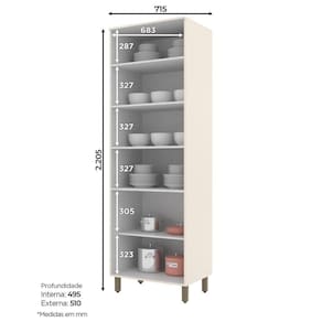 FICHA TECNICA: Cor Interna: Trama Acabamento: Na versao Duna com Cristal a Pintura e UV Texturizada e na versao Off White a Pintura e UV Escala de Brilho: Na versao Duna com Cristal e Fosco e na versao Off White e Brilho Material do Fundo: MDF Material Principal: MDF Qtd. Gavetas: Nao possui Qtd. Portas: 4 Und Material da Dobradica: Metalica de 35mm Material do Puxador Porta: Aluminio Tipo Porta: Bater Qtd. Prateleiras: 4 Und Peso Maximo por Prateleira: Cada prateleira suporta ate 8 Kg, a carga deve ser distribuida uniformemente. Material da Prateleira: MDF Possui Vidro: Sim, vidro Reflecta nas portas Possui espaco para Quantos Fornos: Nao possui Estilo de Paneleiro: Cristaleira Qtd. Pes: 4 Und Pes Regulaveis: Sim Material Pes/Rodape: MDF Altura Pes/Rodapes: 14,5 Cm Produto Suporte ate (Kg): 55 Kg Pode ser Montado Suspenso: Nao Medidas Conjunto Montado: 220,5 x 71,5 x 51,5 Cm Peso Conjunto Montado: 60 Kg