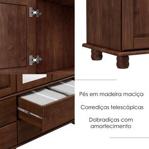 Cristaleira e Balcão, um conjunto projetado para quem busca móveis que combinam elegância e funcionalidade para complementar sua decoração. Produzido em madeira maciça de pinus de reflorestamento, sua estrutura robusta garante durabilidade e resistência. A Cristaleira conta com 05 portas, sendo 02 de vidro incolor e 01 gaveta, e o Balcão com 03 portas e 03 gavetas. As portas possuem dobradiças com amortecimento, e as gavetas corrediças telescópicas, que proporcionam abertura suave e silenciosa. Com pintura acetinada com verniz PU e UV, que realça a beleza natural da madeira enquanto protege contra desgastes do dia a dia e puxadores metálicos que adicionam um toque moderno ao design clássico do produto. Os pés torneados em madeira maciça garantem estabilidade e charme artesanal. Oferecem amplo espaço interno, perfeitos para organizar louças, objetos decorativos ou itens de sua preferência. Estes móveis chegarão em sua casa separados em 03 volumes.