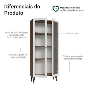 Além de agregar sofisticação ao ambiente, a cristaleira oferece visibilidade para suas louças, copos e itens decorativos. Os pés cônicos são um diferencial dessa versão, criando um design único e contemporâneo, enquanto proporcionam maior firmeza e estabilidade ao móvel.
