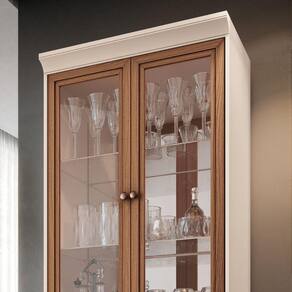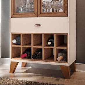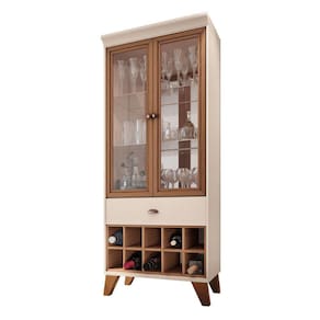 Cristaleira com design retrô ideal para compor a decoração de salas de jantas ou estar, 2 Portas de vidro emolduradas em MDF revestidas com papel melamínico, 2 Prateleiras de vidro 6mmm, espelhos 3mm ao fundo. Moldura superior robusta valorizando e realçando os aspectos retrô do móvel, gaveta com corrediças telescópicas e puxador com acabamento metálico na cor bronze.