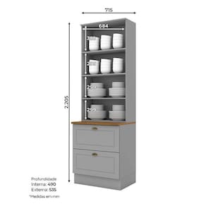 Cristaleira Americana Cinza com Tampo Naturale Henn