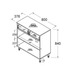 Possui 2 gavetas com corrediças metálicas que suportam até 5 kg cada.