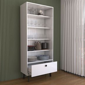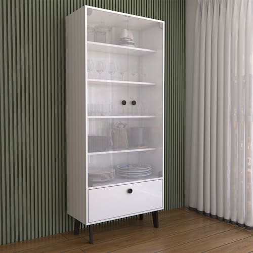 O(a) Cristaleira Bellagio 2 Portas 1 Gaveta com Vidro Branco - Loja é produzido em MDP na escala de brilho Semi-Brilho, e possui um grau de dificuldade de montagem: Médio.
