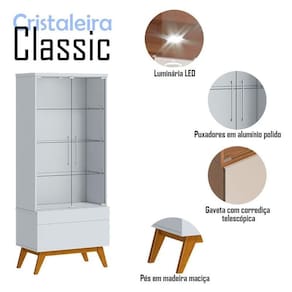 A cristaleira da linha Classic oferece um toque de elegância e funcionalidade para qualquer ambiente. Com duas portas em vidro, exibe seu interior de forma sofisticada. As três prateleiras também em vidro proporcionam amplo espaço para organizar seus objetos. Além disso, possui uma gaveta com corrediça telescópica, garantindo um deslize suave e fácil acesso aos seus pertences. A inclusão de uma luminária LED realça a beleza, criando um ambiente acolhedor. Produzido pela Imcal, é desenvolvido em MDP com materiais de alta qualidade garantindo mais durabilidade e resistência. Combinando estilo com design clássico será a escolha perfeita para quem busca uma peça que una organização e praticidade ao seu ambiente. Confira e garanta o seu!