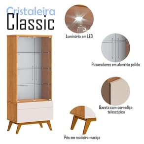 A cristaleira da linha Classic oferece um toque de elegância e funcionalidade para qualquer ambiente. Com duas portas em vidro, exibe seu interior de forma sofisticada. As três prateleiras também em vidro proporcionam amplo espaço para organizar seus objetos. Além disso, possui uma gaveta com corrediça telescópica, garantindo um deslize suave e fácil acesso aos seus pertences. A inclusão de uma luminária LED realça a beleza, criando um ambiente acolhedor. Produzido pela Imcal, é desenvolvido em MDP com materiais de alta qualidade garantindo mais durabilidade e resistência. Combinando estilo com design clássico será a escolha perfeita para quem busca uma peça que una organização e praticidade ao seu ambiente. Confira e garanta o seu!