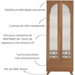Fabricada com materiais de alta qualidade e acabamento impecável, esta cristaleira garante resistência e durabilidade para você usar por muitos anos.