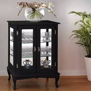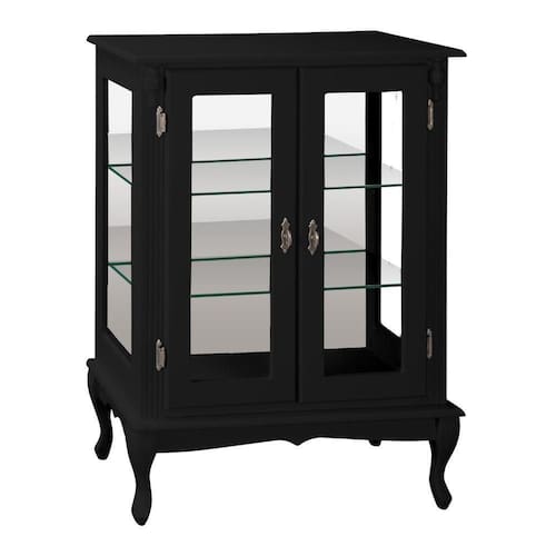 - 01 Cristaleira de Madeira 2 Portas 2 Prateleiras Vidros na Lateral Pés Luiz XV