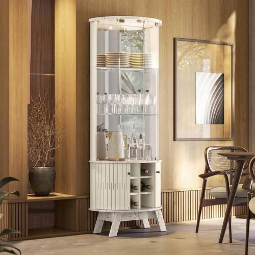 A Cristaleira Marina possui design exclusivo com painéis em MDP de 15 e 25mm, portas íveis em MDF e detalhes curvos que fazem toda a diferença. Com puxadores de poliestireno, dobradiças metálicas e prateleiras de vidro de 6mm, cada detalhe foi pensado para oferecer sofisticação e praticidade. Completo com luminária de LED, espelhos e pés palito, é a peça perfeita para dar um toque moderno e elegante à sua decoração.