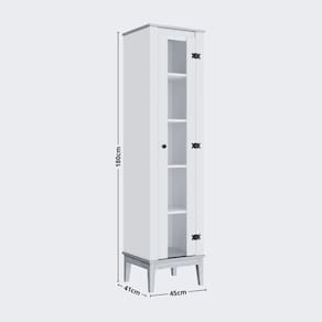 Características: 1 Porta com vidro transparente de 3 mm Acabamento Pintura UV Design colonial elegante e atemporal Estrutura em MDP 15 mm e MDF 3 mm Ideal para sala de jantar, estar ou cozinha Pés em madeira maciça para maior estabilidade Puxadores e dobradiças em zamac