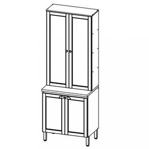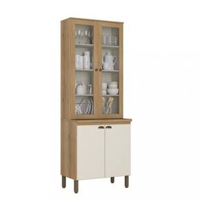 Características: Estrutura e portas em MDP de 15mm Fundos do módulo em MDF de 3mm 4 Portas sendo 2 com vidros 1 Prateleira removível 4 Tampos fixos, 1 tampo de 30mm 4 Pés reguláveis, 2 puxadores ponto 2 puxadores ponto, 2 Puxadores concha Dobradiças metálicas com amortecimento Sistema de montagem com parafusos e cavilhas