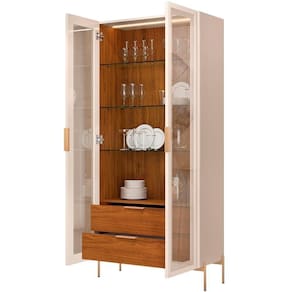 Com elemento que remete ao estilo industrial, como os pés metálicos robustos, essa peça única traz também um toque orgânico ao seu ambiente, graças aos seus cantos arredondados, portas de vidro reflecta e luminária LED na parte interna. Ideal para exibir suas louças, taças e afins, essa cristaleira de vidro se transformará em um verdadeiro ponto focal na decoração da sua sala de jantar ou até mesmo sala de estar. Seja para guardar cristais, objetos de arte ou lembranças de viagens, essa cristaleira é mais do que um móvel; é uma declaração de estilo. Venha dar um novo significado ao seu espaço e deixe sua casa ainda mais aconchegante e sofisticada!