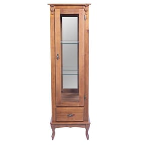 - 1 Cristaleira de Madeira 1 Porta 1 Gaveta 3 Prateleiras Lateral com Vidro Espelho no Fundo Pés Luiz XV