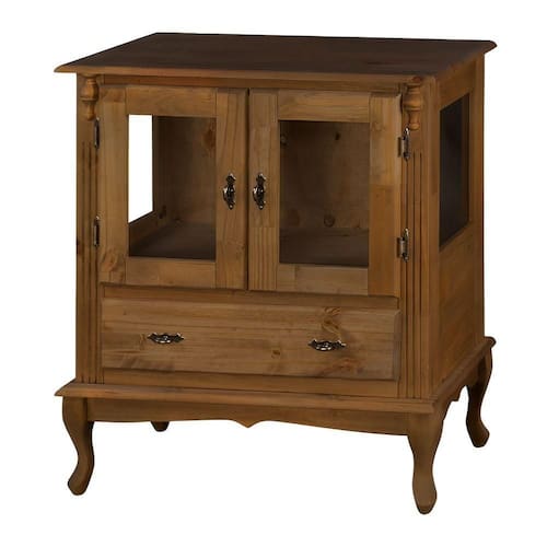 - 01 Cristaleira de Madeira 2 Portas 1 Gaveta Vidros na Lateral Pés Luiz XV 1004