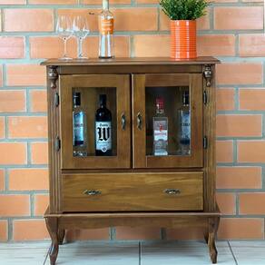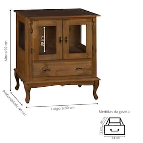 Cristaleira de Madeira 2 Portas 1 Gaveta Vidros na Lateral Pés Luiz XV 1004 Imbuia Glazer