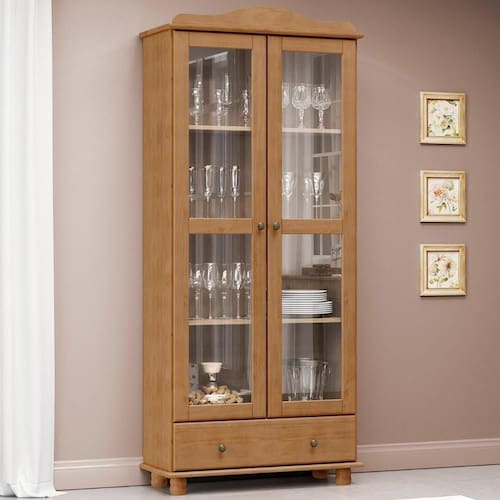 Cristaleira de Madeira 85cm 2 Portas de Vidro Rubia Freijó F07
