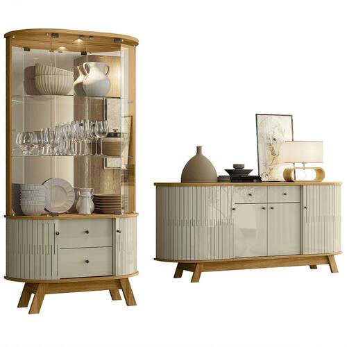 O Cristaleira de Vidro e Buffet Eva Z10 Cumaru/Opala, da Mpozenato, é a combinação perfeita de sofisticação e funcionalidade para sua Sala de Estar.