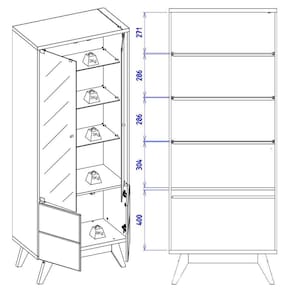 Materiais: MDP/MDF, vidro (5 mm) e Madeira Maciça (Pinus)