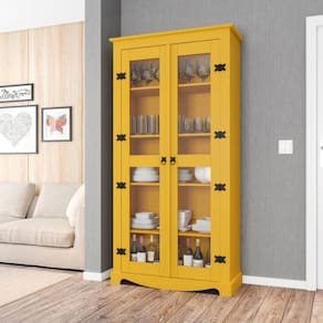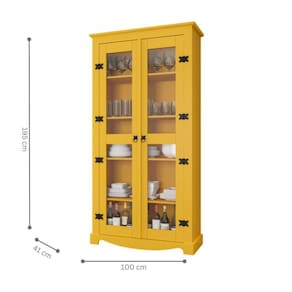 Cristaleira Georgia Amarelo A Cristaleira é um móvel cheio de personalidade e indicado para deixar sua sala de jantar ainda mais charmosa. é também perfeito para expor suas louças e permite total visualização dos mesmos em seu interior a partir de suas duas portas de abrir em vidro. Com puxadores e dobradiças em metal, 4 prateleiras e vidro em 3mm. Informações do produto: Altura: 195 cm Largura: 41 cm Comprimento: 100 cm Informações do produto: Cor: Amarelo Peso suportado: Até 30 kg distribuídos Puxadores: Sim Portas: Sim Prateleiras: Sim Material Principal: MDF Itens inclusos: 01 Cristaleira Kit completo para montagem e manual de instruções Garantia: 3 meses. Informações Complementares: - Verificar o tamanho e detalhes do produto antes da compra. - Fotos meramente ilustrativa. - A transportadora entregará o produto no andar térreo do endereço de entrega. - Avaliar a mercadoria no ato do recebimento e recusar em caso de divergência ou danos. - Não nos responsabilizamos pela montagem e desmontagem do produto no ato da entrega e devolução, assim como os custos gerados nestas situações. - Sugerimos a contratação de um montador para a montagem do produto. Não nos responsabilizamos por danos causadas no ato da montagem. DESCRIÃ?Ã?O DO TAMANHO: 195X41X100 | GARANTIA DO FABRICANTE: 3 | QUANTIDADE DE CAIXAS DE EMBALAGEM: 3 | CORES DO PRODUTO (FILTRO DE CORES): AMARELO | MATERIAL PRINCIPAL: MDP | MATERIAL PARA FILTRO: MDP | ESTADO DE ORIGEM: SP | INSTRUÃ?Ã-ES/CUIDADOS: Limpar com pano macio e seco, nÃo utilizar produtos abrasivos. | PRODUTO PRECISA DE MONTAGEM?: Sim, a montagem à facil mas sugerimos a contrataÃÃo de um montador para a montagem do produto. NÃo nos responsabilizamos por danos causados no ato da montagem. | ALTURA DO PRODUTO (CM): 195 | LARGURA DO PRODUTO (CM): 41 | COMPRIMENTO DO PRODUTO (CM): 100 | PESO DO PRODUTO (KG): 63 | ALTURA DO PRODUTO COM EMBALAGEM (CM): 20 | LARGURA PRODUTO COM EMBALAGEM (CM): 47 | COMPRIMENTO PRODUTO COM EMBALAGEM (CM): 188 | PESO PRODUTO COM EMBALAGEM (KG): 64 | PRODUTO: CRISTALEIRA | MARCA: CASAH | QUANTIDADE DE PORTAS: 2 | QUANTIDADE DE PRATELEIRAS: 4 | COR PREDOMINANTE: AMARELO