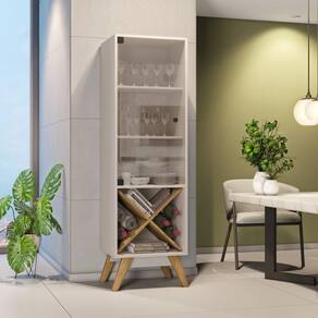 Com estilo retrô a Cristaleira Graça é o complemento ideal para organizar e deixar sua sala de jantar mais aconchegante. Produzida em MDP 15mm, Porta em vidro temperado, Adega decorativa, Pés em madeira maciça.