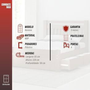DIMENSÕES: Altura: 220 cm Largura: 65 cm Profundidade: 50 cm