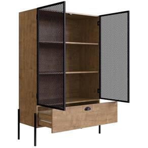 A Cristaleira Industrial York Artesano é moderna, urbana e autêntica, móvel produzido em MDP 15mm com acabamento em BP, as portas são em aço com detalhes em chapa expandida e acabamento em pintura epóxi fosca e fecho magnético, a gaveta tem puxador metálico e corrediça telescópica com extração total. Cristaleiras são peças ideais para agregar um toque especial ao ambiente, a linha York é moderna e tem uma pegada industrial, torna-se a opção ideal para quem gosta de personalidade e praticidade na hora de decorar.