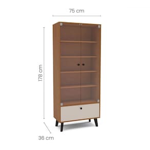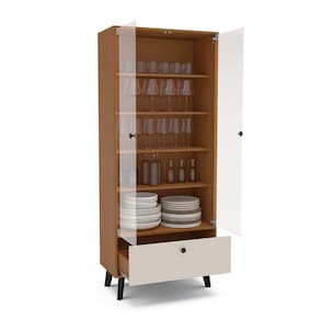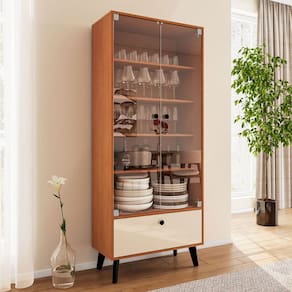 O(a) Cristaleira Londres 2 Portas 1 Gaveta com Vidro Creme/Freijó - Politorno é produzido em MDP na escala de brilho Semi-Brilho, e possui um grau de dificuldade de montagem: Médio.