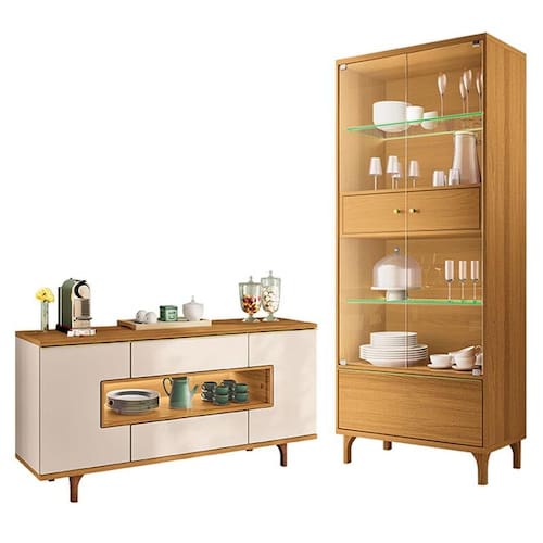 Cristaleira Lumina Cinamomo com Buffet Murano Off White Cinamomo - HB móveis