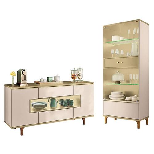 Cristaleira Lumina Off White Champanhe com Buffet Murano Off White Champanhe -HB Móveis