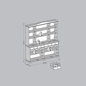 ESPECIFICAÇÕES TÉCNICAS:<Br> Matéria prima madeira maciça de pinus de reflorestamento;<Br> Pintura Acetinada Verniz PU e UV;<Br> Corrediças telescópicas;<Br> Peso máximo suportado pela Gaveta 05kg distribuídos;<Br> Puxadores metálicos em ouro envelhecido;<Br> Pés tornecados em madeira maciça;<Br> Vidro liso incolor;<Br> Prateleiras em madeira maciça (Peso suportado 10kg distribuídos);<Br> Isolamento de peças com manta de polietileno expandido (Isomanta);<Br> Possui manual de montagem;<Br> Sistema de montagem simples e rápida.<Br><Br>