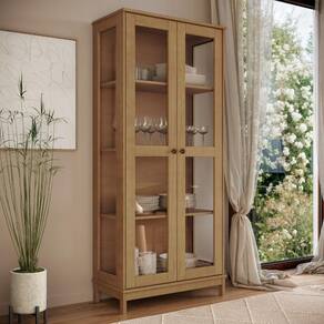 Beleza e funcionalidade em equilíbrio, Cristaleira Essência ideal para ambientes atemporais e sofisticados. Com estrutura 100% em Madeira Maciça Taeda (presença calorosa, toque orgânico) com acabamento em pintura brilho 5%. Com toque elegante e atemporal sua lateral é composta por vidro liso incolor envoltas de moldura em madeira maciça, assim como em suas portas, equipadas com dobradiças metálicas e amortecimento. Conta ainda com amplas prateleiras internas de 16mm, puxadores metálicos na cor ouro envelhecido e pés retos. Produto será entregue em 01 volume.