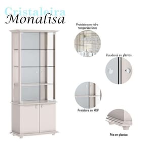 A cristaleira da linha Monalisa é uma peça elegante e funcional, perfeita para adicionar um toque de elegância ao seu espaço. Com duas portas em vidro, proporciona uma exibição de seus cristais e louças. Possuindo duas prateleiras em vidro espaçosas é perfeita para acomodar seus objetos. Além disso, possui uma prateleira adicional para colocar seus itens. O espelho atrás cria uma sensação de profundidade, ampliando o espaço. Com duas portas inferiores apresenta um amplo espaço interno permitindo guardar garrafas com segurança. Fabricado pela Imcal, é desenvolvido em MDP/ MDF com materiais de alta qualidade garantindo mais durabilidade e prolongando a vida útil do móvel. Com acabamento impecável, esta cristaleira combina beleza e praticidade, tornando-se uma peça principal para seu ambiente. Confira e garanta o seu!