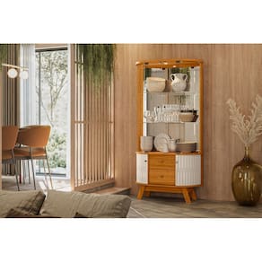 Seu layout foi pensado para expor louças, taças e objetos decorativos com charme, enquanto as gavetas e nichos inferiores ajudam a manter tudo em ordem no dia a dia. É um móvel que une beleza, praticidade e presença no ambiente.