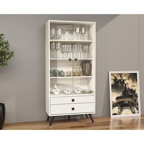 A cristaleira 2 portas e 2 gavetas, RT 3151, é produzida em MDP 15mm, MDF 3 mm, Pé plástico retrô, Puxador ABS, Porta de vidro 4mm. Traz o charme e elegância da linha retrô para seu lar.