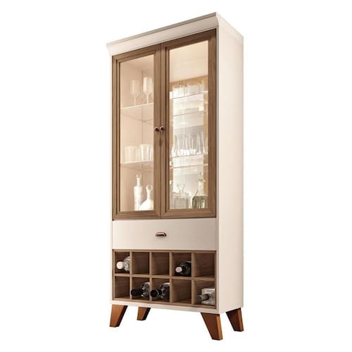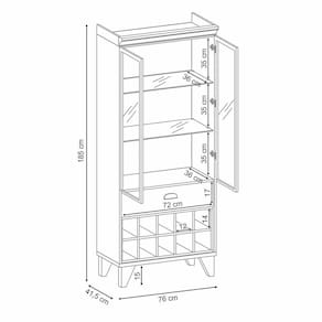 Esta elegante cristaleira é o complemento perfeito para qualquer sala de jantar. Com espaço para armazenamento, este móvel é tanto funcional quanto sofisticado, adicionando um toque de luxo à sua casa. Ideal para exibir sua coleção e manter tudo organizado, este armário é uma escolha elegante para os amantes de vinho e entusiastas de decoração de interiores.