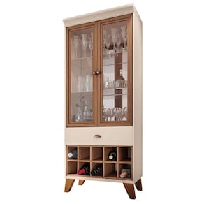 Esta elegante cristaleira é o complemento perfeito para qualquer sala de jantar. Com espaço para armazenamento, este móvel é tanto funcional quanto sofisticado, adicionando um toque de luxo à sua casa. Ideal para exibir sua coleção e manter tudo organizado, este armário é uma escolha elegante para os amantes de vinho e entusiastas de decoração de interiores.
