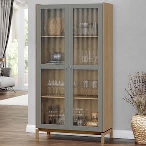 Fabricada em madeira maciça de alta qualidade, essa peça encanta com suas portas de vidro incolor canelado, que protegem e embelezam seus objetos mais especiais, criando um delicado jogo de luzes e transparências. Com prateleiras internas, você pode organizar desde taças de cristal até porcelanas finas, transformando essa cristaleira de vidro em uma verdadeira galeria para seus tesouros domésticos. Por fim, os pés flutuantes completam o design, conferindo leveza e um toque contemporâneo a qualquer ambiente.