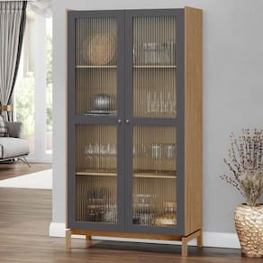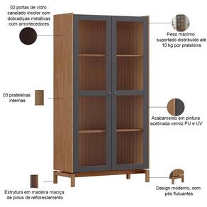 Fabricada em madeira maciça de alta qualidade, essa peça encanta com suas portas de vidro incolor canelado, que protegem e embelezam seus objetos mais especiais, criando um delicado jogo de luzes e transparências. Com prateleiras internas, você pode organizar desde taças de cristal até porcelanas finas, transformando essa cristaleira de vidro em uma verdadeira galeria para seus tesouros domésticos. Por fim, os pés flutuantes completam o design, conferindo leveza e um toque contemporâneo a qualquer ambiente.