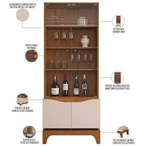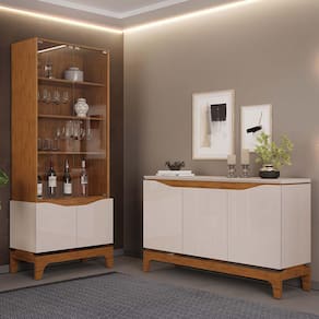Desenvolvida com a ideia de organizar e expor louças, porcelanas e demais itens da sala de jantar, a Cristaleira Para Sala de Jantar Bar Adega 2 Portas Clarice D05 Freijó Off White, da Lyam Decor, é a solução perfeita para você que quer criar um ambiente elegante e funcional.