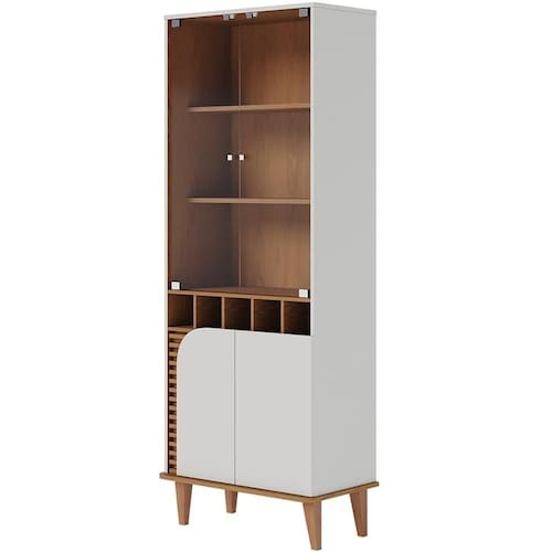 Cheia de estilo e sofisticação, a Cristaleira Para Sala de Jantar Bar Adega 4 Portas Julia Off White Matte Freijó, da Lyam Decor, vai transformar a sua casa e deixa-la muito mais funcional e elegante. Os pés de madeira maciça são marcados por um design retrô, ao passo que uma das portas conta um design orgânico representado pela quina curva, além do detalhe ripado que garante o toque contemporâneo. Já as portas de vidro temperado evidenciam as prateleiras que receberão os cristais e taças. Logo abaixo, é possível aproveitar uma adega para 05 garrafas e, assim, dispor as suas bebidas preferidas. Em outras palavras, o complemento perfeito para a sua sala de jantar ou bar e, assim, ter tudo o que precisa ao alcance das mãos.