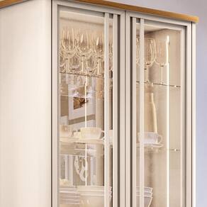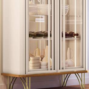 A Cristaleira Síria é o que falta pra sua sala de jantar! Com acabamentos impecáveis, torna o espaço mais elegante e garante grande destaque para a composição dos móveis na ambientação. O espelho ao fundo e iluminação led, expressa sofisticação e modernidade, que expõe com ainda mais graciosidade as louças, cristais, taças e decorações em geral. O design orgânico arredondado mesclado com o estilo industrial é uma opção moderna que traz leveza e harmonia ao ambiente. Os pés em aço com acabamento dourado conferem um toque de luxo e requinte, contrastando com a transparência das portas de vidro. Pode ser disposta na sala de jantar, de estar, cozinha, escritório ou até em corredores e espaços de circulação, aposta perfeita para quem deseja inovar sem erro!