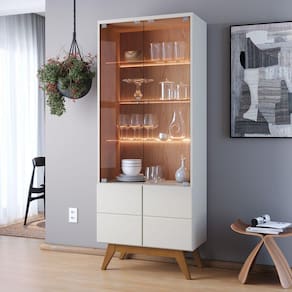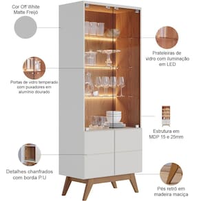 Detalhes únicos e modernos, traduzem a nossa Cristaleira Para Sala De Jantar com 02 Portas Martin C04 Off White Matte Freijó - Lyam. Perfeita pra quem busca trazer um charme á mais no momento de decorar a sala de jantar, é uma excelente escolha para quem exige uma decor impecável! Possui três prateleiras internas de vidro, com um detalhe que vai parar tudo! O fundo iluminado com Led, não decepciona quando é para encantar, valorizando ainda mais suas taças, copos e louças. Nunca foi tão fácil escolher uma cristaleira, né? Leve já á sua!