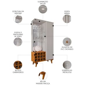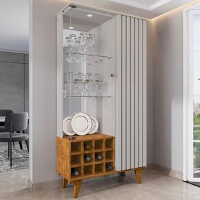 A Cristaleira Com Adega conta com nichos ideais para armazenar garrafas de forma segura e organizada, além de um espaço interior com divisões bem distribuídas, que oferecem praticidade no dia a dia e facilitam a organização de diversos itens, como taças, utensílios ou objetos decorativos .