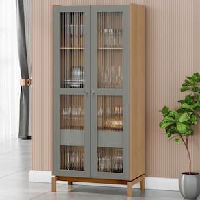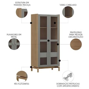 Conta com estrutura em madeira maciça que valoriza o design com um toque elegante, enquanto as portas com vidro canelado e os puxadores cônicos adicionam um charme especial. As dobradiças metálicas com amortecimento oferecem um fechamento suave e silencioso, mantendo o visual impecável a Cristaleira.