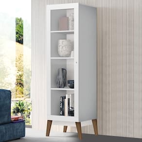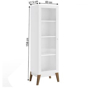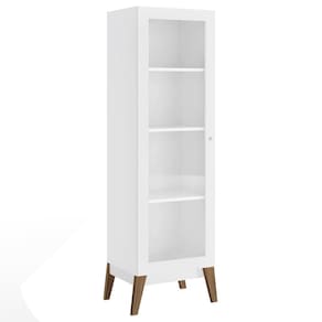 O(a) Cristaleira Retrô 1 Porta de Vidro Branco - Loja é produzido em MDP na escala de brilho Fosco, e possui um grau de dificuldade de montagem: Médio.