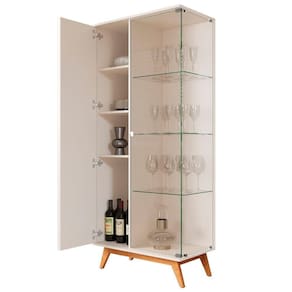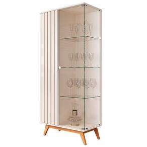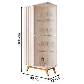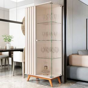 Feita em MDP 24mm. Contém 1 porta com detalhes ripados e 1 de vidro e 3 prateleiras.