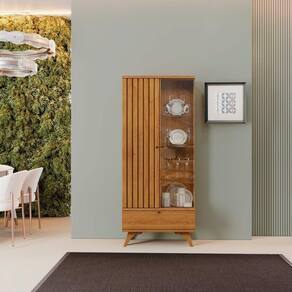 Cristaleira Ripada Versa C/led Pés Madeira Maciça - Mavaular Naturalle Uma Cristaleira moderna e sofisticada, um produto perfeito para embalezar seu ambiente. A Cristaleira possui 1 porta ripada e outro com porta de vidro, além das laterais e prateleiras com vidro também temperado em 4mm. Além de possui esses detalhes, a Cristaleira possui iluminação em LED, gavetas com corrediças telescópicas e lindos pés de Madeira Maciça. Esse móvel possui nas cores Naturalle e Off White com Naturalle. Medidas do produto: