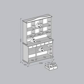 ESPECIFICAÇÕES TÉCNICAS:<Br> Matéria prima madeira maciça de pinus de reflorestamento;<Br> Pintura Acetinada Verniz PU e UV;<Br> Corrediças telescópicas;<Br> Peso máximo suportado pela Gaveta 05kg distribuídos;<Br> Puxadores metálicos em ouro envelhecido;<Br> Pés tornecados em madeira maciça;<Br> Vidro liso incolor;<Br> Prateleiras em madeira maciça (Peso suportado 10kg distribuídos);<Br> Isolamento de peças com manta de polietileno expandido (Isomanta);<Br> Possui manual de montagem;<Br> Sistema de montagem simples e rápida.<Br><Br>