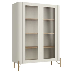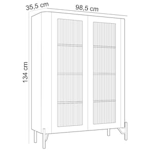 Com portas de vidro canelado, essa cristaleira moderna adiciona um toque de refinamento, enquanto protege e exibe seus objetos mais especiais - desde louças finas até taças e decorações. Seu design orgânico, com linhas curvas, harmoniza perfeitamente com os pés metálicos de estilo industrial, criando um contraste moderno e cheio de personalidade. O amplo espaço interno, em 100% MDF, oferece organização generosa, com prateleiras firmes para adaptar-se às suas necessidades.