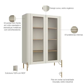 Cristaleira Sala De Jantar 2 Portas Vidro Pés Industrial Dourado Naim I03 Luna Louro - Lyam Decor - Bege