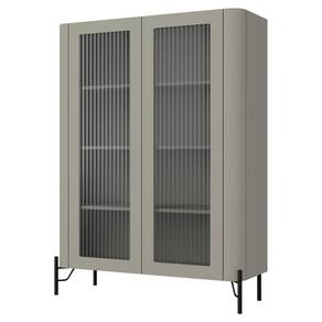 Cristaleira Sala De Jantar 2 Portas Vidro Pés Industrial Preto Naim I03 Grigio - Lyam Decor - Bege